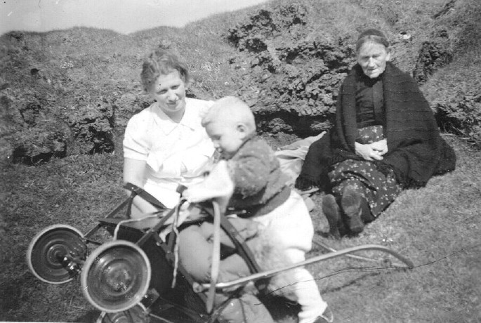 Í Elsulaut í Vestmannaeyjum, sumarið 1941. Aðalheiður Snorradóttir og Sigríður Guðmundsdóttir