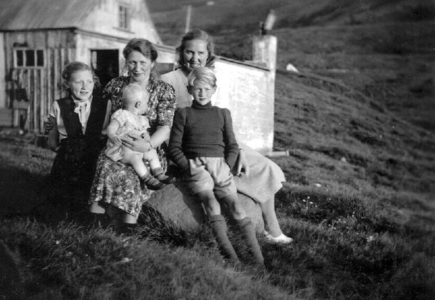 Kyrrlátt sumarkvöld á Stað, 1948. Eyrún, Aðalheiður, Sigrún, Ása og Snorri