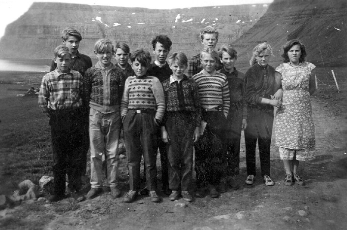 1954, fermingarhópurinn mætir til spurninga út á Stað