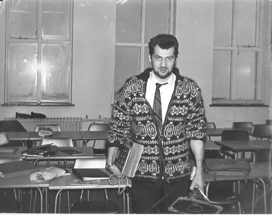 Eftir tķma ķ Reykholtsskóla, með kennslutękin undir hendinni, 1969-70