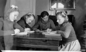 | Strax þennan fyrsta vetur voru hjá okkur unglingar sem voru með hjálp Jóhannesar að búa sig undir framhaldsnám eftir barnaskólann en þá lauk skólaskyldu 14 ára. Voru það unglingar bæði úr næsta firði og úr þorpinu. Þau ár, sem við vorum á Stað að vetrinum, voru alltaf nemendur hjá okkur 2-3 mánuði. Þeir gerðu sér húsnæðið að góðu. Þetta var nokkur viðbót við heimilisstörfin en bætti þó upp að líflegra var í kringum mann og ég var frjálsari að skreppa í kaupstað öðru hvoru því stúlkurnar pössuðu fyrir mig. |